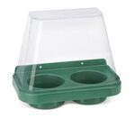 Double eyewash stand with drill points for securing to the wall , Supplied with clip on clear cover. For use with 2 x 500ml Eyewash bottle (CM0710)