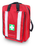 A high quality Paramedic type Rucksack , Manufactured from durable Cordura. , Size: 50 x 40 x 17cms , Colour red, with silver reflective strips on front and back. , With strong, adjustable should straps, and quick release buckle , Large Pocket at the front , Includes several colour coded internal pouches , Complete with protective, studded ant-scuff pads , Strong, durable zippers